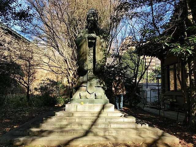 湯島聖堂に、大きな孔子像がある。 孔子の背後に 梅の木がある。 まだ つぼみ。 咲いたら綺麗だろうな。