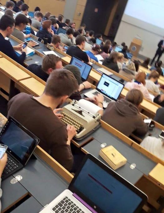 中には写真のように周りがデジタルになってもタイプライター(手書きメモ帳)を使う人も居るのかな