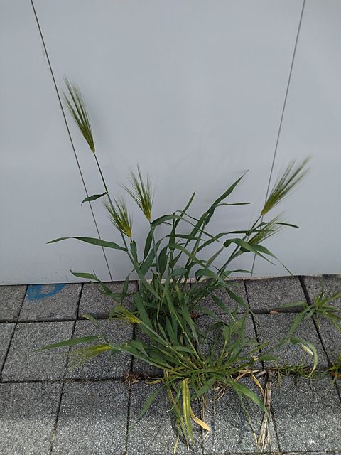街中の石畳の隙間にど根性麦を発見しました。こんな街中で麦畑は何処に有ると想うところに生えていた。推測するに花屋の飾りに麦が使われそれが偶然こぼれ麦が出来た。