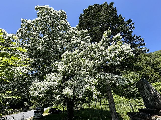 写真は「なんじゃもんじゃ」の木、いま花が満開になっています。家からクルマで5分ほどのところにある。じっくり観たのはひょっとして初めてかもです。