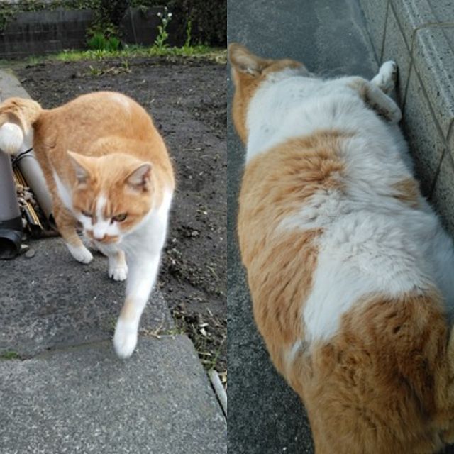 通勤途中のお馴染み茶トラ白さん(飼い猫)