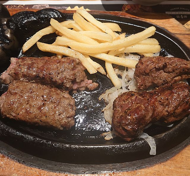 今日の晩御飯は、ブロンコビリーハンバーグと肉を食べた。