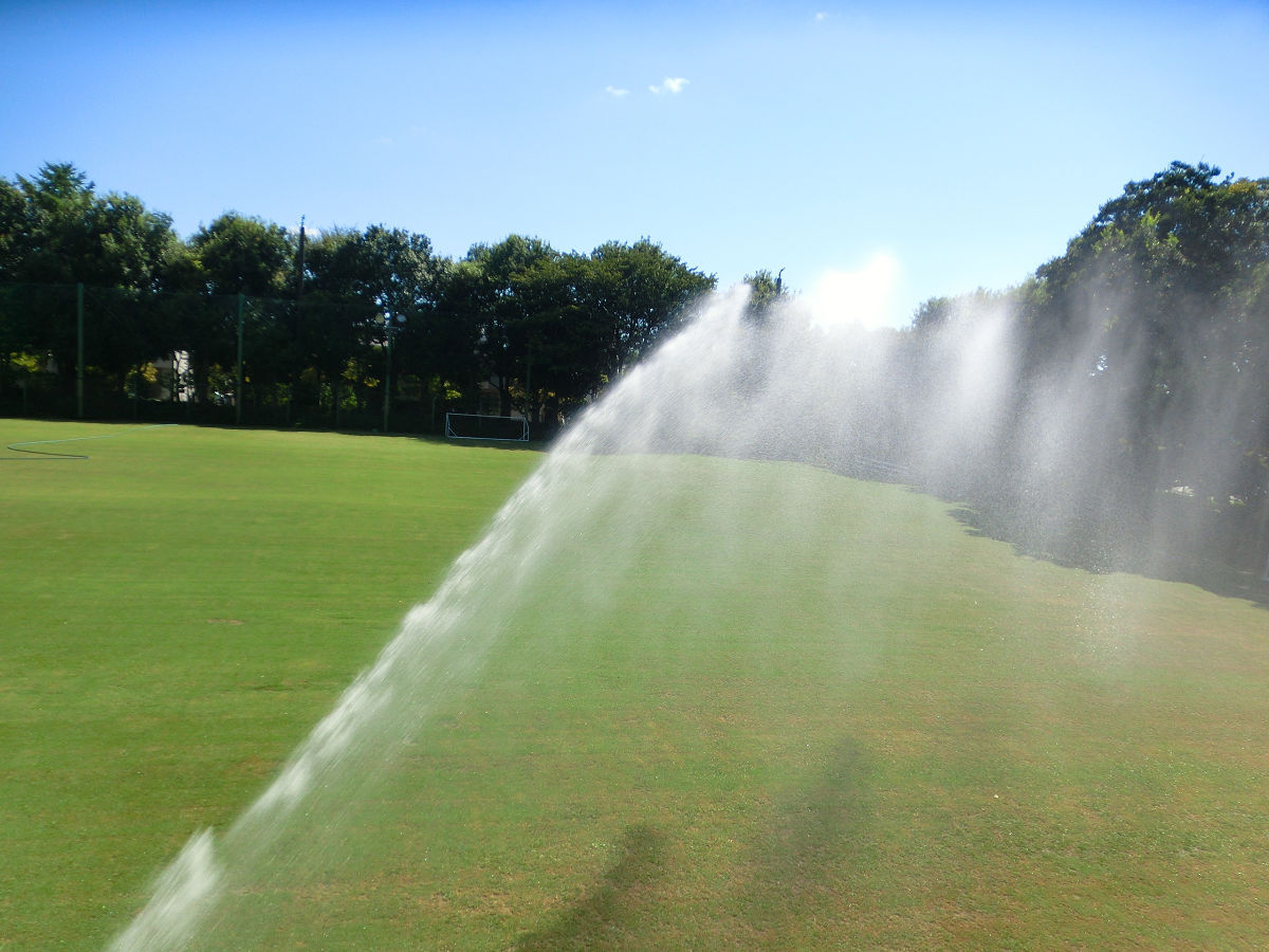昨日、たまたま行った公園。 グランドがあって スプリンクラーで 水撒きをしてた。