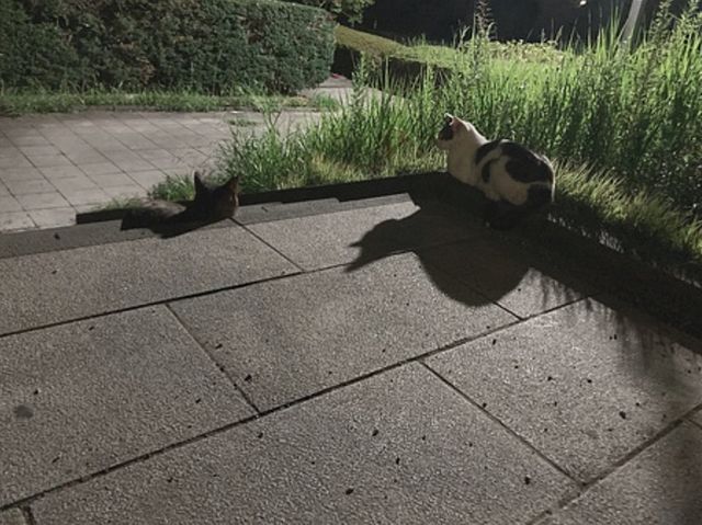 夜、野良猫ちゃんたち探しをするとだらけていて大変そう…