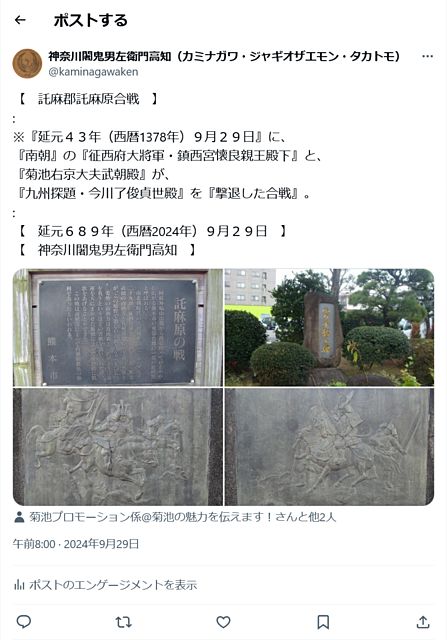 【 『永和四年(延元43年・西暦1378年)九月二十九日』の『託麻郡託麻原合戦』 】