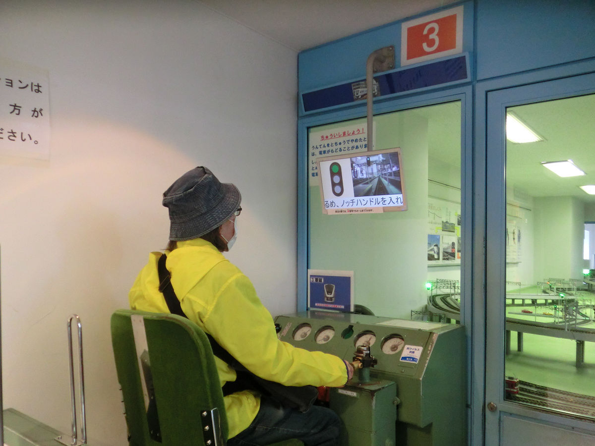 遊んでるオッサン。 いや、もうすぐジーサンか。 簡単な「電車シミュレーター」だが、 やり方が全く分からず、 博物館の人に 付きっきりで教えられた。