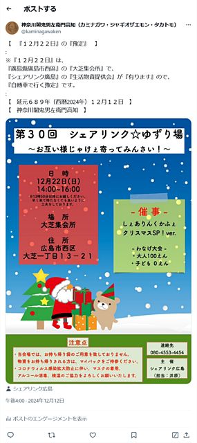 【 『十二月二十二日』は『廣島廣島市西區』の『大芝集会所に行く豫定』 】