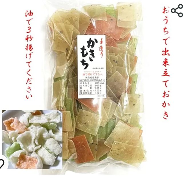 もう一つ、火鉢で調理してたとと言えば、『かき餅』。これは地方によって指すものが違うので写真を参照してください。プラスチックみたいな餅です。見た目は中国のえびせんべいに似てます。かき餅を如何にムラ無く大きく平らに焼くかで競ってましたね。熱いうちは芯がまだちょっと柔らかいんですよね。冷めると平たい「ひなあられ」みたいな感じです。今はなかなか手に入らないですけど、トースターで焼いてた覚えがあります。