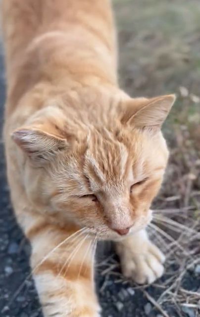野生ネコに ご飯あげたら ノビーするのは なんでだろ、、、、 あ。くった~ってやってるのかな?