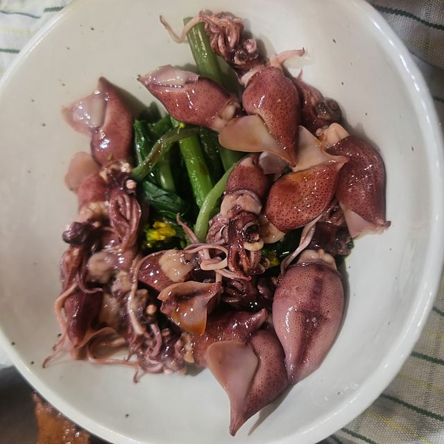 アブラナ科の変わった野菜のおひたしにホタルイカ