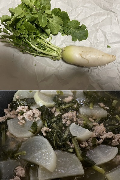 伯父は今までも時々、畑の野菜をくれていましたが、私が大根に関しては葉っぱが大好きだということを知っています。