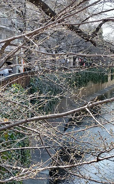 靖国神社のソメイヨシノは間もなく開花宣言だそうですが、ここ 呑川の桜はまだみたい。
