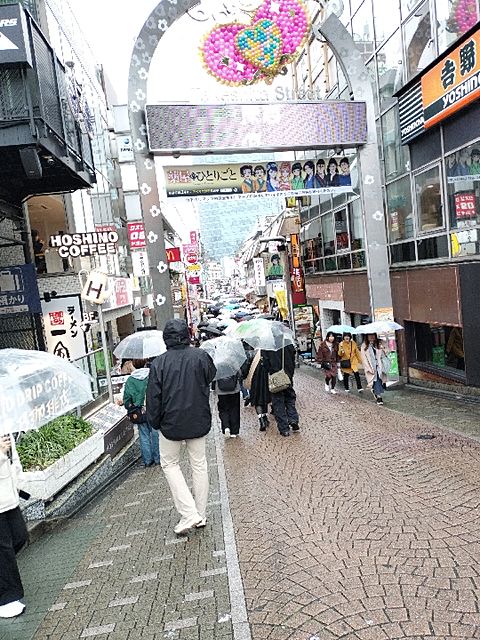 一昨日 雨の日、竹下は雨傘て人は全くみえませんが 何時もの満員御礼ですね、