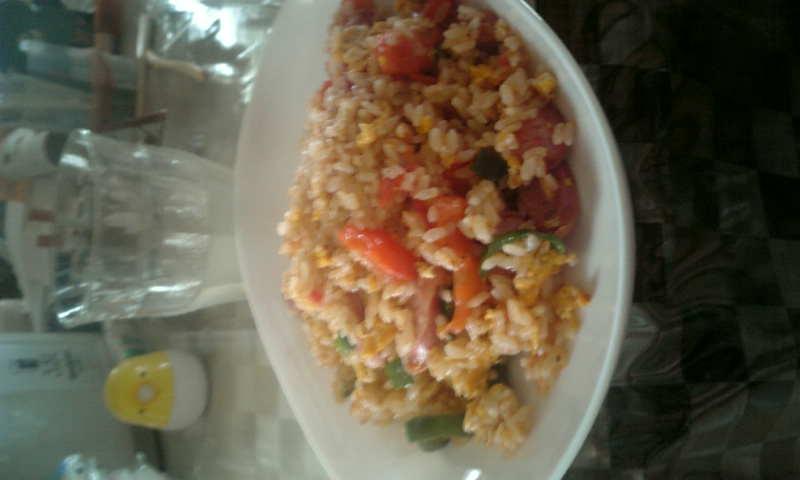 タマゴ炒めて、半熟のうちにピーマンとソーセージを。そのあと全体に味付けしてからトマトっ★少しフライパンをあおったらご飯入れて軽く混ぜます。ほんの少しダシスープをまわしがけして炒めて出来上がりっ★