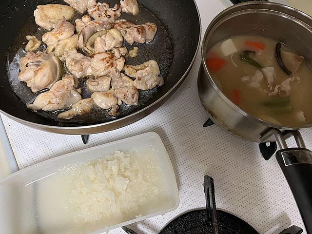 今日は鶏もも肉のみぞれ煮と豚汁を作って