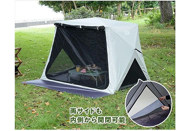 傘を開く要領で テント設営