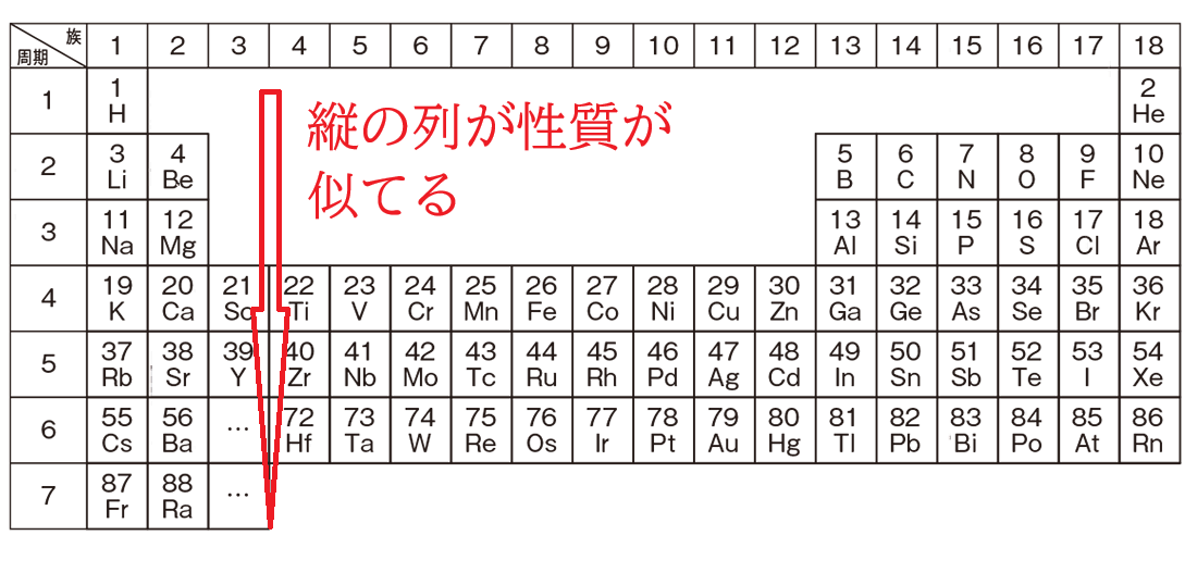 特に元素記号と番号は重要で縦の列は物性が似てる