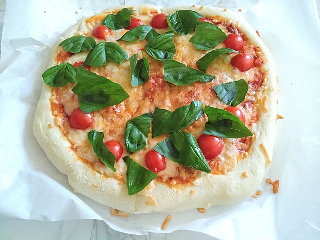 今日はお昼に手作りピザを焼いてみた[ピザ]トマトソースをたっぷり塗って、モッツァレラチーズとバジルをのせた王道のマルゲリータ🧀 オーブンから香ばしい匂いがしてきた瞬間からテンション爆上がり生地も自分でこねたから、もちもちで香ばしくて大満足家でこんなに本格的なピザが食べられるなんて、ちょっと感動だった🥹️次は具だくさんのピザにも挑戦してみたいな~[キノコ]🫑またピザパーティーしたくなる味だった