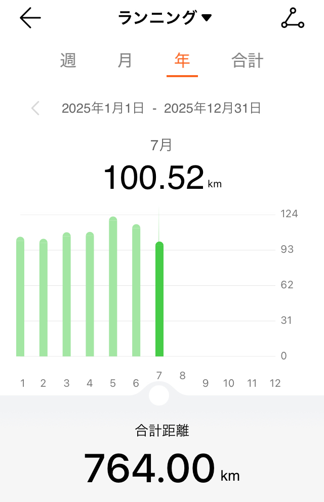本日で1月から始めたジョギング100キロを7か月連続達成!!!
