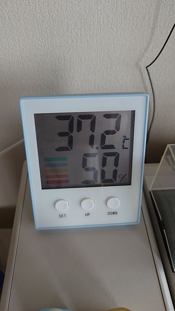 自分の部屋の気温ですが、お昼前に体温以上になりました。゚(゚´Д`゚)゚。
