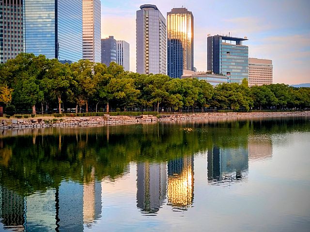 昨日の帰路でお掘りに写ったビル群に思わずパシャリ