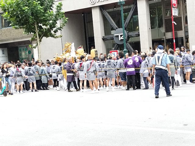 今日は池袋からバスでの帰りがけ、渋谷駅の近くで 御神輿の休憩しているところに 通りがかりました。
