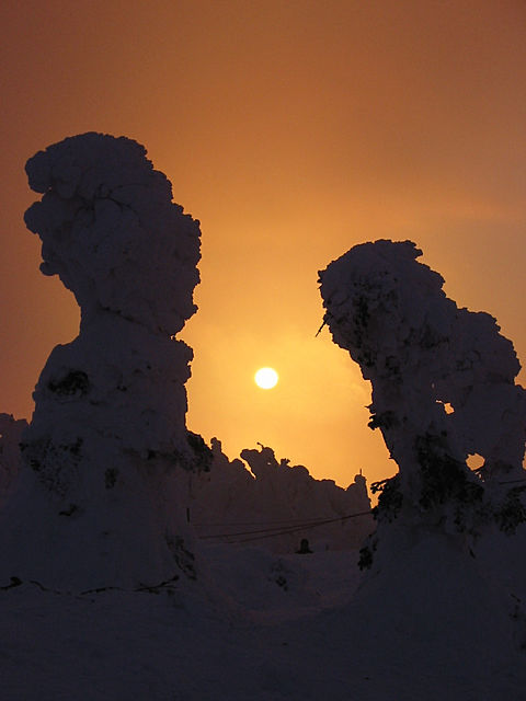 山形蔵王スキーをしに行った時に、山頂で遊んでいたら日没近くになり後ろを振り返ったら、とても綺麗な光景でした。