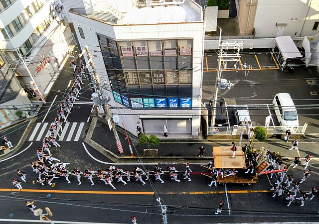 4トンのだんじりが勢いよく曲がり角に突っ込ん