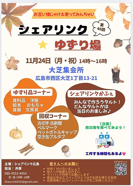 【 『十壱月二十四日』は『大芝集会所』で『シェアリンク廣島』の『生活物資提供会』 】