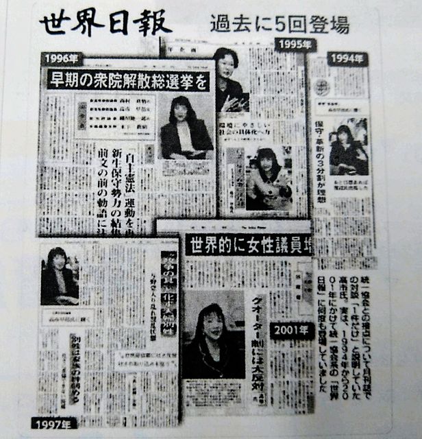 (高市氏は旧統一教会との関係を否定するが、旧統一教会の「世界日報」に5回も登場している)