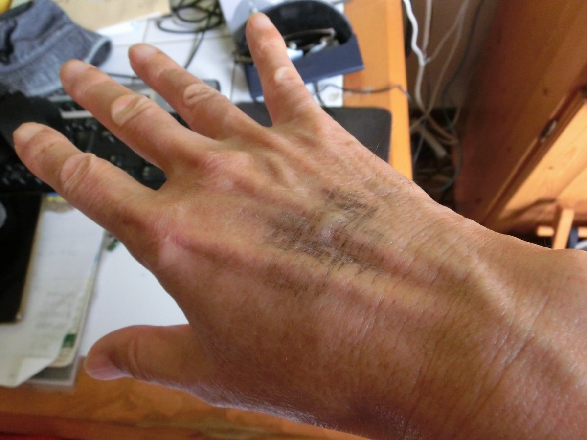 昨日、新宿のライブハウス「アンチノック」に行った。 入り口で精算を済ますと、 再入場のために必要と、 手の甲に スタンプを押された。 1日経って、消えてない。