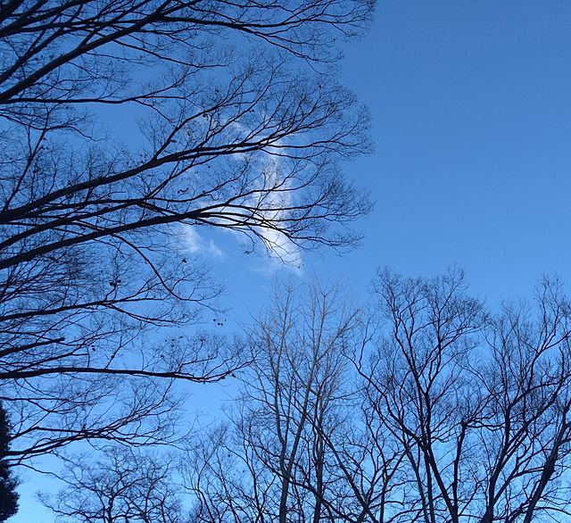 冬の大阪城公園は、落葉樹がすっかり葉をリストラし空が広くなっている。