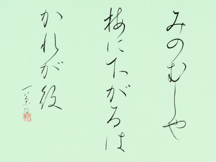 梅の枝にみのむしがぶら下がっている。あの蓑をまとい、寒空の下でじっと耐えている様子こそが、彼ら(みのむし)の果たすべき役割(一生、あるいは運命)なのだ。