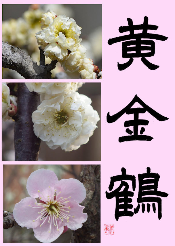 黄金鶴(コガネヅル)はその栽培品種の1つである。(梅図鑑参照)