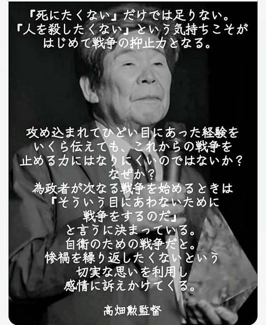 食料自給率の問題。エネルギー自給率の問題。日本列島の海岸線に並ぶ原発の防御の問題。冷静に考えれば、戦争を続ける能力などないに等しいのに、兵器だけが増えていく!