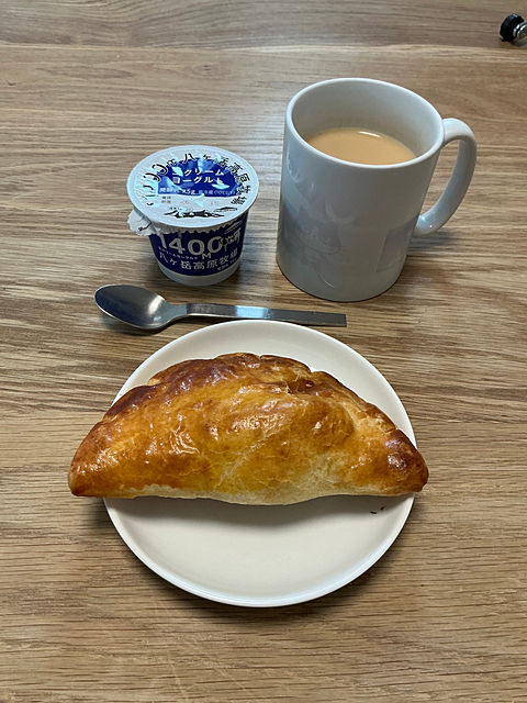 今朝の朝ごはんは、少し贅沢な組み合わせ。紀ノ国屋ベーカリーのアップルパイを用意して、温かいチャイとヨーグルトを一緒に食べた。アップルパイは、サクサクのパイ生地の中に甘酸っぱいりんごがたっぷり入っていて、一口食べるだけで幸せな気分になる。温かいチャイのスパイスの香りも心地よく、体がじんわり温まった。ヨーグルトのさっぱりした味も加わって、バランスの良い朝ごはんになったと思う。ゆっくり味わいながら食べていると、朝の時間がとても穏やかに感じられた。美味しいものを食べて一日を始めると、なんだか今日は良い日になりそうな気がする。