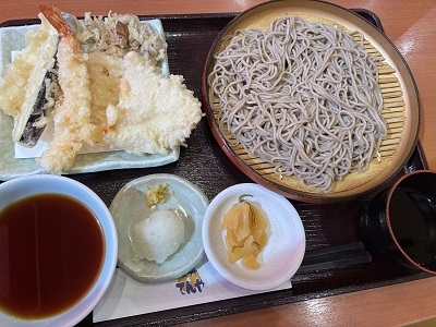 いろいろと思案は尽きない中、ざるそばチャージ。