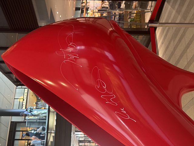プラダを着た悪魔2の主演のアン・ハサウェイとメリル・ストリープのサイン入りハイヒールのオブジェ。言われなけりゃわからない!