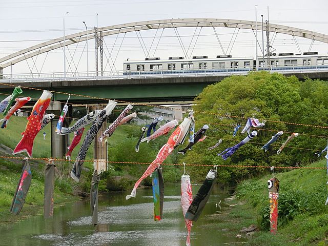 利根川 と 江戸川を 近距離でつなぐ為に造られた、 人工の川が 利根運河。 東武線が 利根運河を横切る時、近くにあるのが「運河」駅。 ここは、4月から子供の日ぐらいまで 川に 鯉のぼりが架かる。 4月、清水公園や東武動物公園に行く時に 電車の中から よく見てた。 春日部へ行く用事があったので ついでに見てきた。