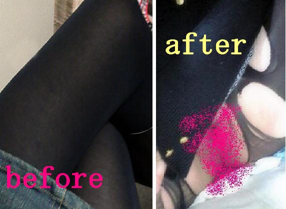 ノーパンにタイツで・・・あそこの部分だけ破られて犯されるのがすきなの・・・