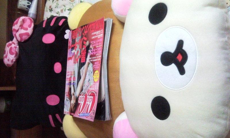 デジログで書いたクッションです♪ リラックマの上に雑誌のっけてみました。 CanCamよりも、かなり大きめです(*^o^*)