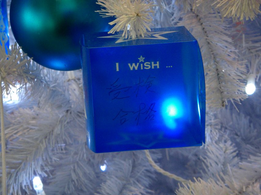 その写真には願いが書かれたキューブで出来たツリーの写真