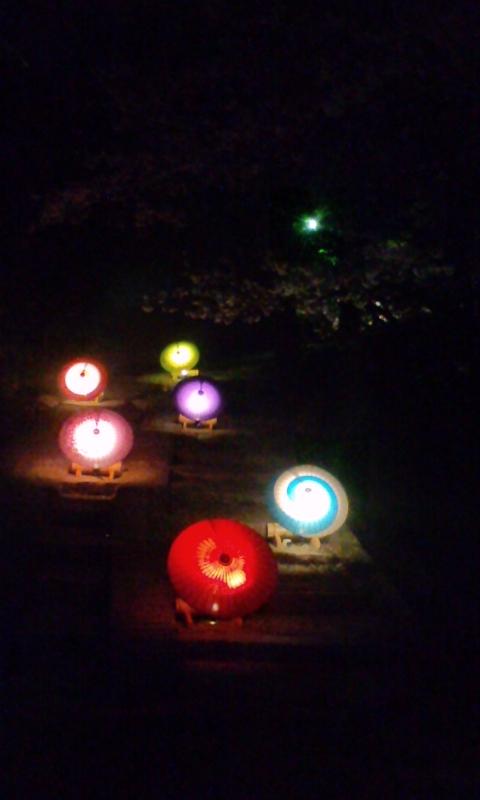画像はライトアップされた 和傘です。