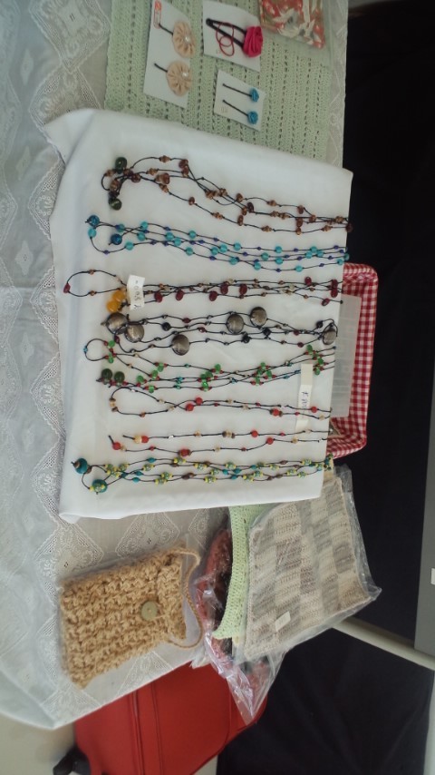 添付画像は、避難者の方々が、作られた物を販売して、利益は支援金としています。