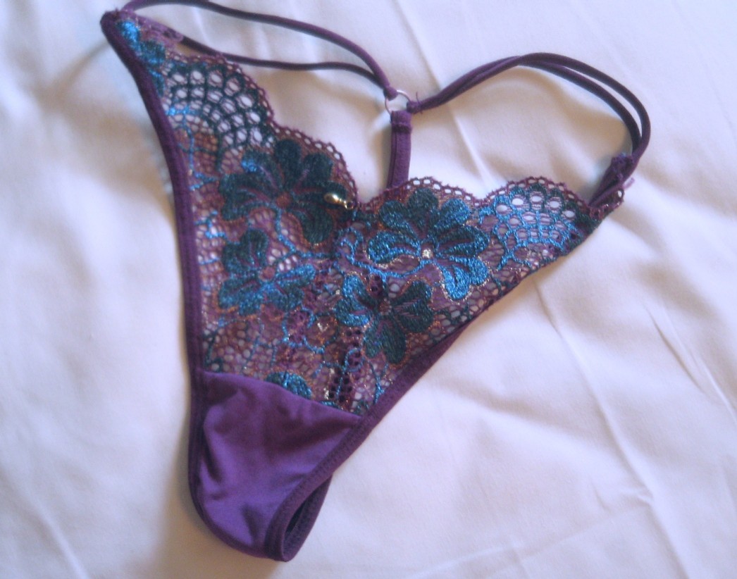 じっとりと湿った紫色のパンティを