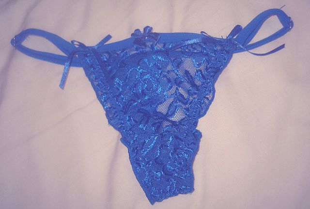 べっとりとシミがついた濡れたクロッチの横で