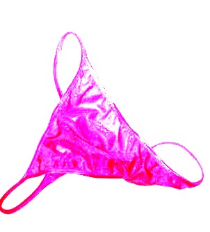 太ももにまつわりついている紫のパンティを