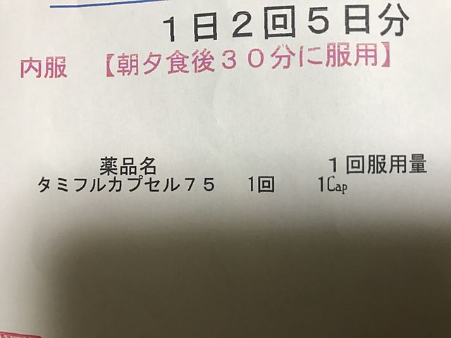 「タミフル」かと思ってたら「イナビル」という薬を処方してもらいました。