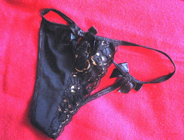 しゃぶっていた赤いTバックを物憂げに履こうとしたが