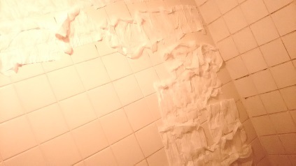 やればバスルームはもとの様にタイル壁が真っ白にもどる。